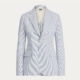 double-breasted silhouette and featuring a timeless herringbone pattern, this tailored blazer is blend of mulberry silk, linen, and cotton.